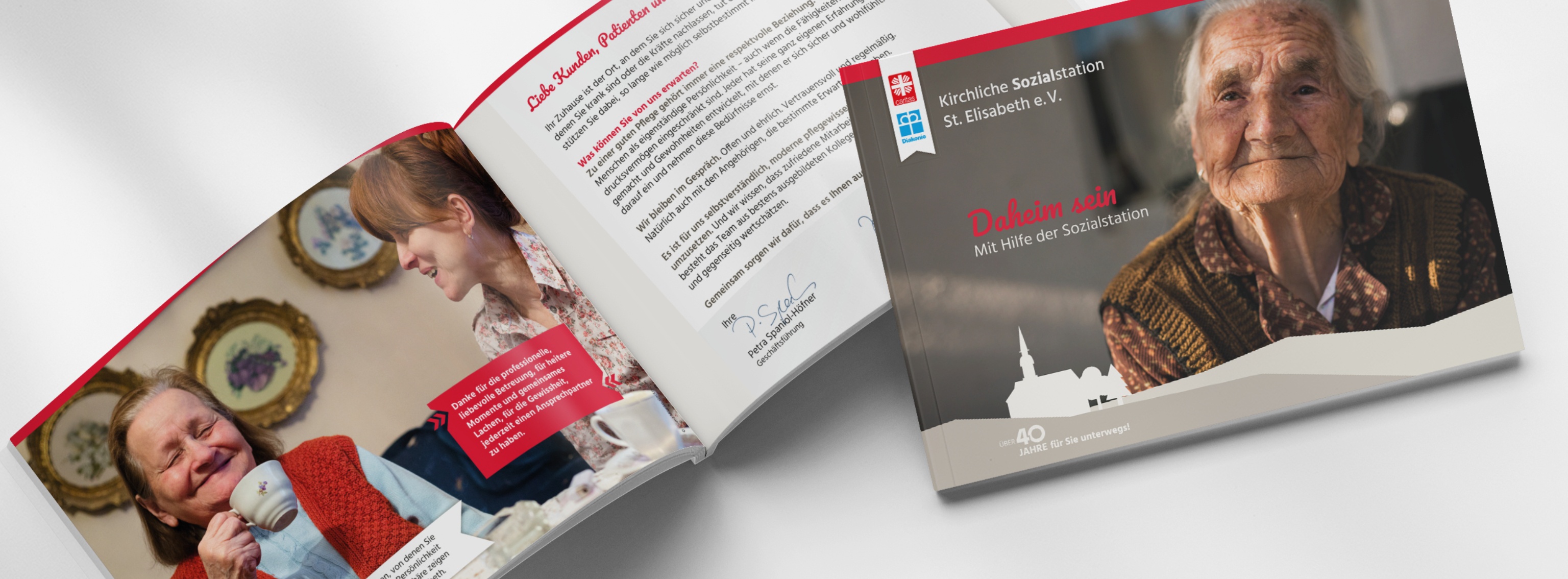 Seit über 30 Jahren ist die Evangelische Sozialstation in Freiburg verwurzelt. Wir präsentieren die vielen Pflegeleistungen modern und sympathisch. Alles aus einem Guss von der Webseite über die Kundenzeitung bis hin zu Logo, Geschäftspapieren, Displays, Broschüren, Sammelmappen und Weihnachtskarten.